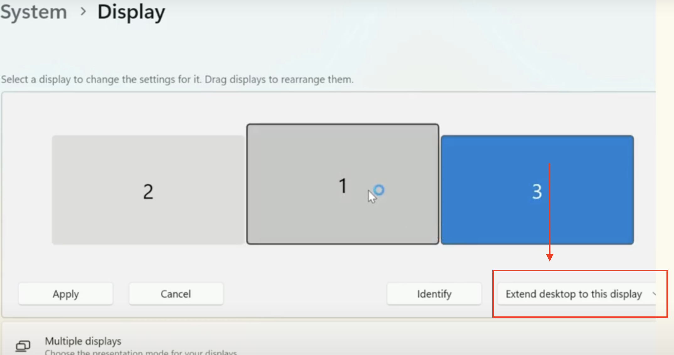 - If you don’t see your screens, check the display settings. Make sure all boxes are set to Extend the desktop, not duplicate or disconnect.