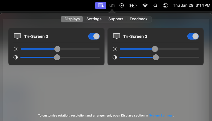 - If you don’t see them, search for “DisplayLink Manager” in your applications and double-click it to turn it on.